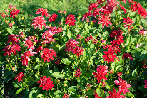 dahlia, red, garden, autumn, beauty, blossom, bloom, botany, bright, bud, colours, colours, curled, decorative, fall, flora, floral, flower, flower head, flowerbed, fragility, freshness, gardening, gorgeous, green, grow, growth, head, leaf, nature, no people, nobody, peaceful, plant, season, shape, vegetation, vibrant, yard