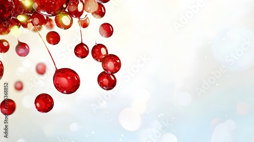 Red Decorative Ornaments with Bokeh Lights on a Soft Light Background for Holiday Celebrations
