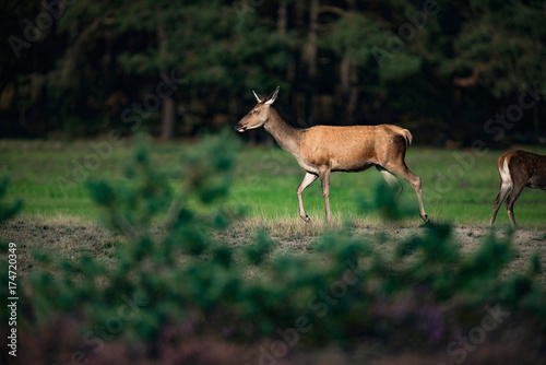 cervid, red, park, forest, nature, wildlife, heather, season, beautiful, holland, colourful, brown, animal, europa, wild, purple, mammal, fur, wood, september, grooved, holland, moorland, blooming, pine, tree, hind