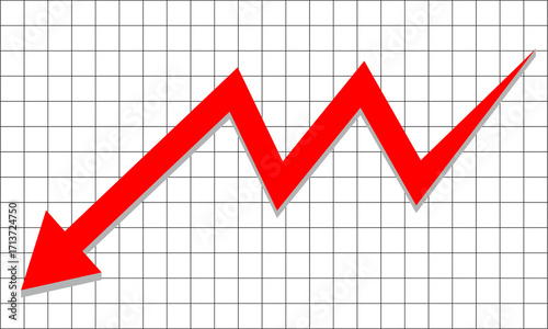 red, graph, line, trend, downward, arrow, chart, datum, analysis, finance, stock, market, economy, business, decayed, fall, loss, decrease, negative, performance, report, statistic, grid, zigzag, peak, vale, movement, direction, shape, symbol, graphic