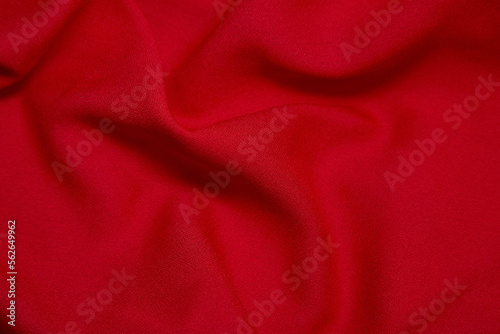 Red fabric background. Red cloth waves background texture. Red fabric cloth textile material.