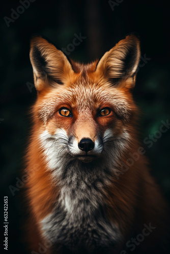 Red Fox in its Natural Habitat with Dramatic Lighting. Majestic Portrait. North America Wildlife Animal. Generative ai