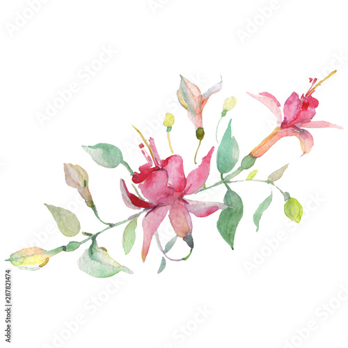Red fuchsia bouquet floral botanical flowers. Watercolor background set. Isolated bouquets illustration element.