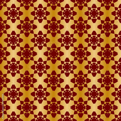 Red gold seamless pattern with regular embellishments..Background like luxury wrapping paper..Design for printing paper as a gold background.