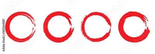 Red grunge circles shapes, grunge round shapes. Paint brush stamp collection. Vector red brush circle. Red grunge circle stamp. Vector illustration. EPS 10