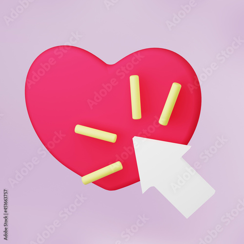 Red heart and hand cursor. 3D illustration