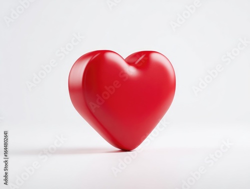 Red heart shape, smooth, 3D, solid, simple, on white background