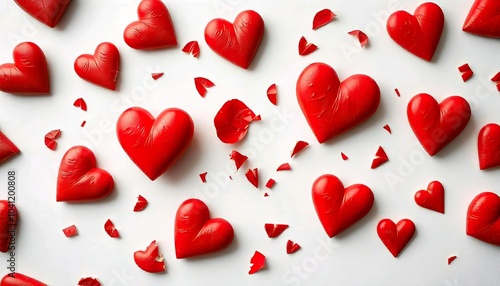 Red heart shapes in various states, on a white background, Valentine's Day