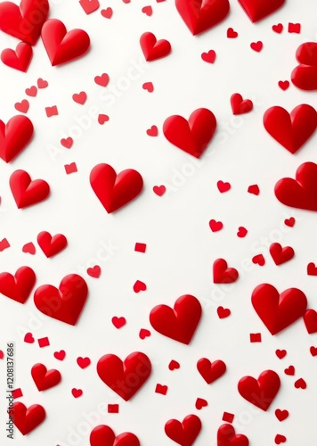 Red hearts confetti on a white isolated background generative ai valentines backdrop love heart valentine vector romantic day holiday