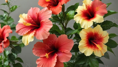 colourful, botanical, garden, white, yellow, flower, accent, bloom, hibiscus, red