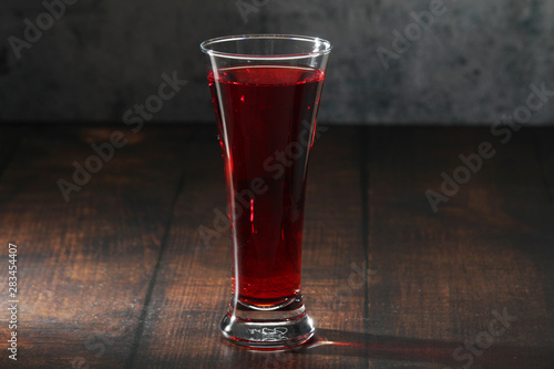 Red juicy drink in a high beer glass