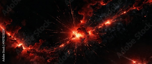 red, light, explosion, space, galaxy, plain, black, background, wide, angle, panoramic, view, copy, fire, light, star, flames, energy, design, flash, shine, orange, texture, fractal, heat, pattern, illustration, animation, colours, burn, motion, bright, background