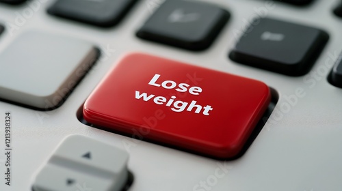 Red "Lose weight" key on computer keyboard. Perfect for fitness goals, health transformation, and wellness journey documentation.
