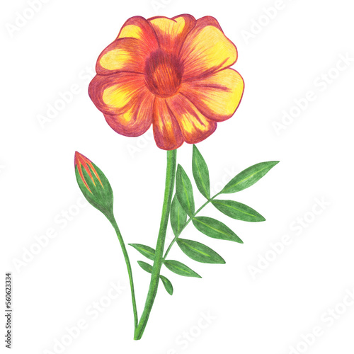 marigold, flower, floral, hand-drawn, isolated, leaf, red, leaf, yellow, green, orange, white, drawing, nature, summer, colourful, realistic, art, element, illustration, painted, design, garden, plant, artwork, image, paint, painting, picture, botanical, crayons, hand-drawn, herbal, wild, botany, flora, wildflower, beautiful, bloom, blossom, spring, daisy, doodle, vignetting, wedding, icon