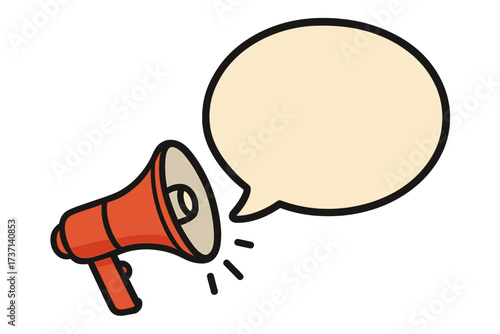 Red megaphone with empty speech bubble. Loudspeaker for important announcement. Banner for business, marketing, advertising. Communication, alert, and promotion concept vector.