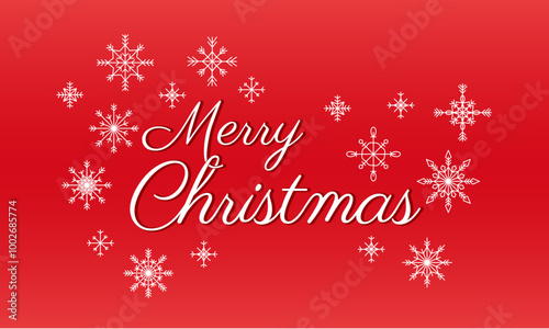 Red Merry Christmas Card with White Snowflakes and Script Font