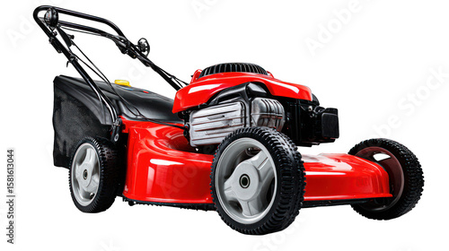 lawn, lawn mower, red, grass, cutting, yard, garden, equipment, machine, tool, wheel, handle, plastic, black, grey, landscaping, maintenance, power, blade, engine, metal, outdoors, agriculture, care, trim, cut, gardening, clean, object, isolated, nobody, sharp, fresh, spring, summer, ground, work, device, mechanical, lifestyle, vegetation, home, residential, suburban, utility, heavy, duty