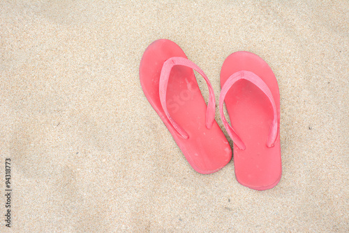 Red old slippers on the beach
