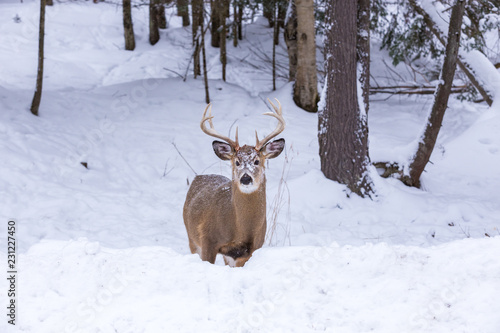 Red or spotted deer in deep mid winter, north Quebec, Canada.