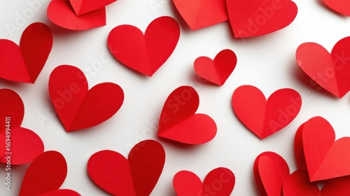 red paper hearts white background top view no logos no brands ar 169