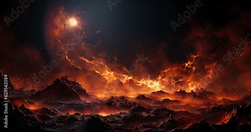 astrology, astronomy, fantasy, galaxy, global, globe, horizontal, outer, outer space, planet, universe, glow, star, science, sphere, alien, exploration, system, cosmos, night, illustration, light, fire, space, abstract, orange, red, black, dark, outdoors, circle, nature, surface, background, landscape