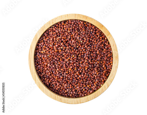 Red quinoa in wood bowl isolated on transparent png