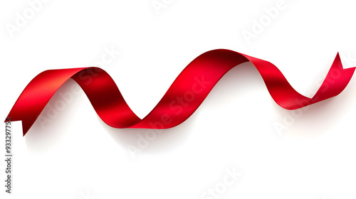 Red ribbon in vector style, curve badge, label, isolated on white background
