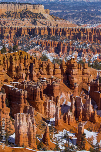 red rock, canyon, snow, winter, sandstone, church steeple, red, pine, tree