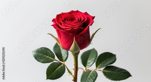 rose, red, bud, green, leaf, white, background, love, beauty, floral, design, nature, theme, symbolism, flower, plant, blossom, flora, romantic, blooming, garden, fresh, vibrant, elegant, single, closeup, detail, elegance, natural, arrangement, decorative, spring, aesthetic, soft, bright, luxury, classic, seasonal, gift, celebration, organic, beautiful, charming, simplicity, serene, tranquil, high-coloured, artistic