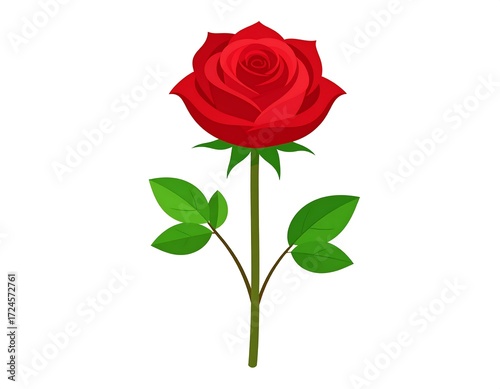 rose, red, flower, floral, stem, green, leaf, flower petals, beautiful, botanical, illustration, vector, simple, art, graphic, design, nature, pretty, elegant, romantic, valentine, gift, symbol, love, classic, image, blood-red, detailed, flat, cartoon