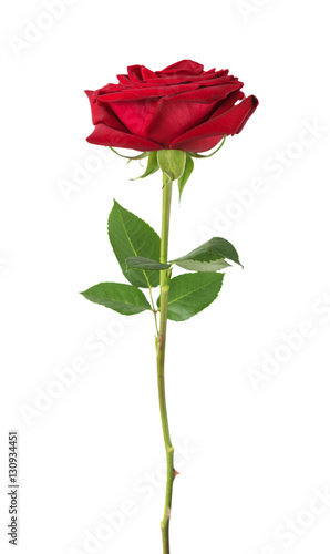 flower, rose, single, isolated, red, nature, green, stem, white, leaf, plant, background, freshness, day, holiday, love, romance, head, long, celebration, decoration, gift, elegance, bright, blossom, beautiful, brightly, floral, botanic, wedding, march, anniversary, solitude, event, vertical, cut, scarlet