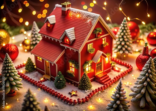 Red Santa House Festive Decorations AI Photo, Christmas, Holiday, Exterior