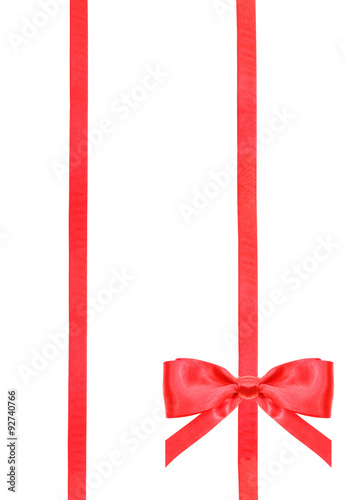 red, bow, ribbon, knot, node, bundle, attaching, tying, disrobed, tape, band, stripes, braid, silk, fabric, textile, isolated, white, white background, present, gift, cardboard box, packing, package, pack, wrapping, banding, taping, box, flat, design, set, 2, 1, vertical, down, narrow, vertically, satin, lower, right, corner, tied, knotted, decor, decoration, decorative, ornamental