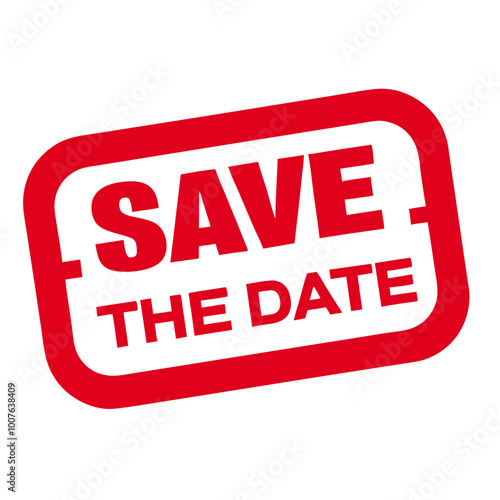 Red Save the Date Stamp with Bold Text in Rounded Rectangle