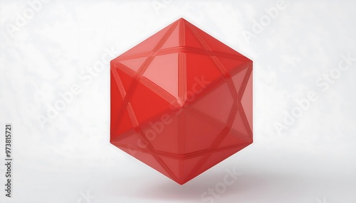 red Smooth Floating Tetrahedron 3D Geometric Shape on White Background