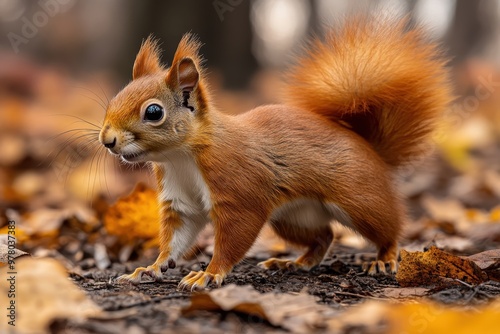 Red Squirrel Walking in an Outdoor Park – Nature Wildlife Photography