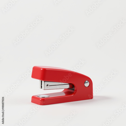 Red stapler with modern design on plain white background, showcasing sleek and minimalistic look, perfect for office or home use, with smooth finish and metallic parts for durability