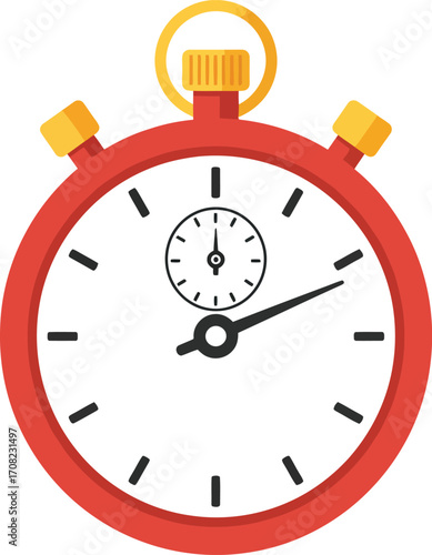 vector, illustration, scalable, icon, stopwatch, time, timing, sport, athletic, competition, race, timer, measurement, clock, watch, red, classic, retro, vintage, equipment, device, instrument, graphic, design, element, clip art, symbol, badge, signs, visual, aid, performance, record, buttons, dial, hand, second, minute, analog