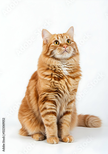 cat, sitting, looking, tabby, red, domestic, felino, animal, mammal, pet, long hair, isolated, white background, studio, pose, eye, fur, fluffy, coat, hair, portrait, cut-out, cute, adorable, young, head shot, looking up, ginger, closeup, cat, kitten, domestic cat, tabby cat, animal portrait, studio shot