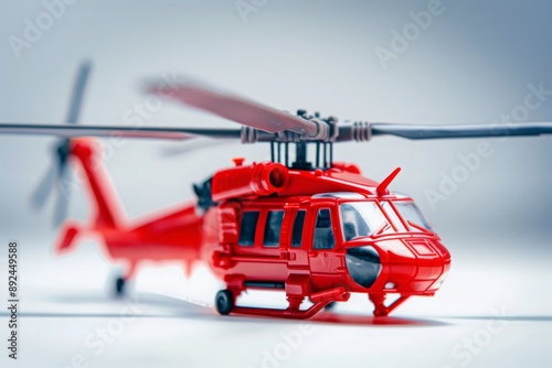 helicopter, toy, red, plastic, rotor, blade, white, background, model, aircraft, miniature, play, children, flight, rescue, military, propeller, engine, tail, fuselage, landing, gear, cockpit, window, door, detail, close, up, sharpened, blur, sharp, shallow, depth, field, isolated, object, surface, studio, photo, image, photo