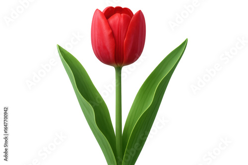 tulip, red, flower, bloom, blooming, blossom, plant, green, leaf, stem, nature, spring, floral, botany, beauty, single, three-dimensional, render, rendering, realistic, growth, fresh, vibrant, colourful, decoration, design, romantic, love, valentine, gift, bouquet, gardening, horticulture, flora, elegant, simple, pure, detail, closeup, macro, cut-out, no people, studio shot, vertical, transparent, background, isolated, white