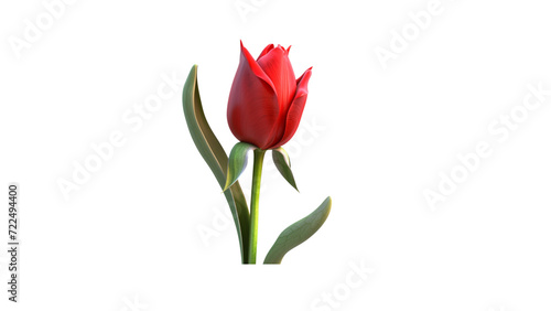 red tulip, green leaf, cut-out, white background, isolated, flower, bloom, simple, elegant, spring, nature, floral, botanical, minimalist, design