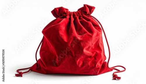 Red velvet drawstring pouch on white background