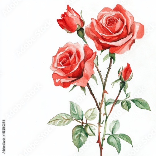 Red watercolor roses isolated on a white background. Hand-drawn illustration.
