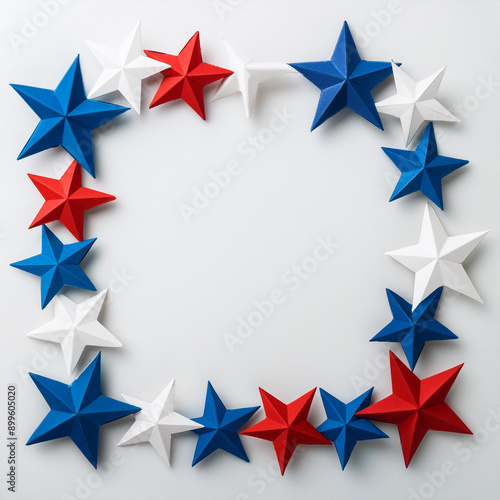 Red, white and blue stars in square shape on white, Independence day, USA president election. America