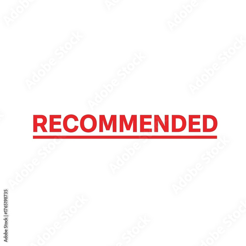 Red word recommended with line underneath, symbolizing strong endorsement or official approval