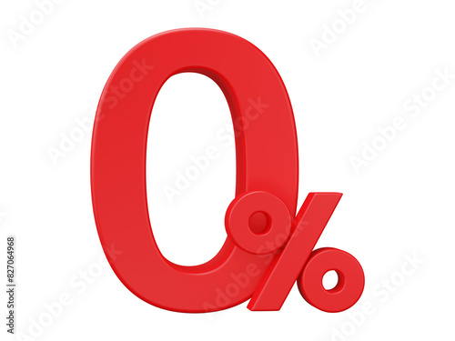 Red zero percent or 0% special offer isolated on transparent background. 3d render illustration.