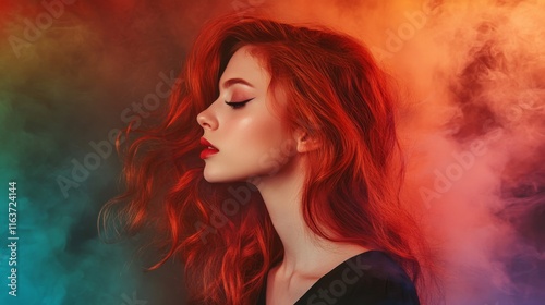 woman, girl, redhead, hair, red, smoke, colourful, beauty, portrait, fashion, model, style, face, eye, lip, pose, expression, elegant, sensual, mysterious, artistic, vibrant, dreamy, studio, light, shadow, background, texture, art, image, photo, picture, graphic, design, visual, aesthetic, concept, mood, feeling, emotion, female, person, human, pretty, attractive, glamour