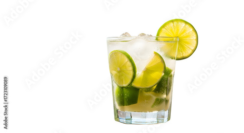 Refreshing caipirinha cocktail with lime isolated on transparent background