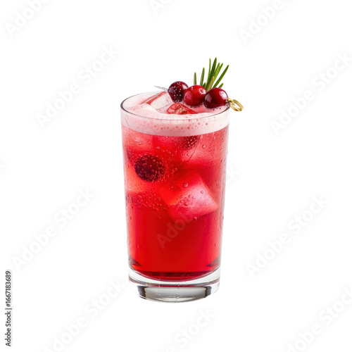 Refreshing cranberry cocktail with rosemary and berries isolated on transparent background